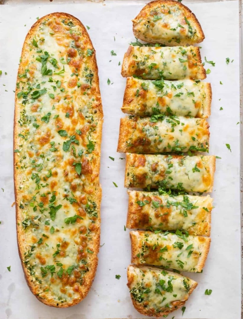 (10” Round cut into strips) Garlic Spread base with mozzarella & Cheddar & oregano